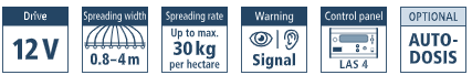 De VINERO® is speciaal ontwikkeld voor wijnbouw, fruitteelt, hopteelt en tuinbouw, en kan worden gemonteerd op alle voertuigen met een 12 V‑aansluiting. De dosering (max. 400 kg/ha) is traploos instelbaar vanuit de bestuurdersstoel via het bedieningspaneel, en kan uiteraard ook tijdens het rijden worden aangepast.