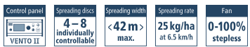 Bij de VENTO II kunnen alle functies en instellingen via het bedieningspaneel worden aangestuurd en zelfs tijdens het rijden worden aangepast. Afhankelijk van de uitvoering van de VENTO® kunnen werkbreedtes van 1 tot 6 of 12 meter moeiteloos worden bereikt.
